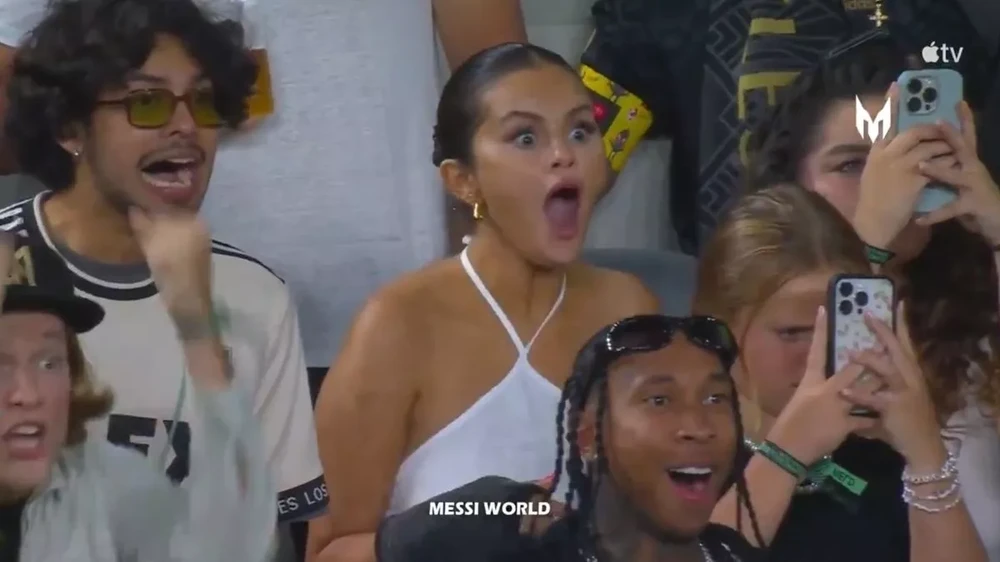 Selena Gomez há hốc mồm kinh ngạc khi Messi bị thủ môn đối phương từ chối cơ hội ghi bàn. ẢNH: MLS |