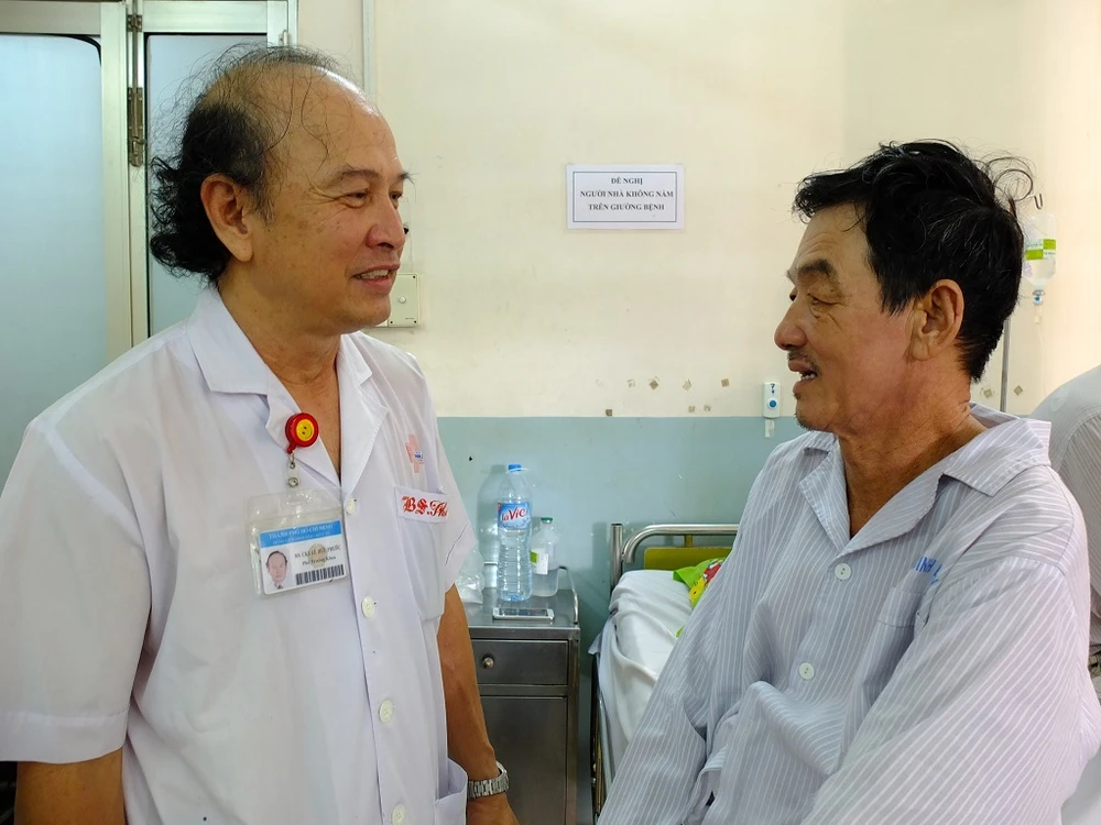 Bệnh nhân trao đổi với bác sĩ sau phẫu thuật.