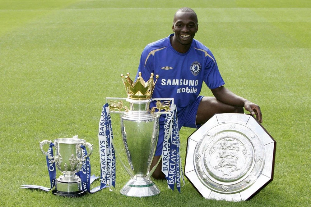 Cựu tiền vệ Makelele và các danh hiệu đã đoạt được cùng với Chelsea. Ảnh: REUTERS