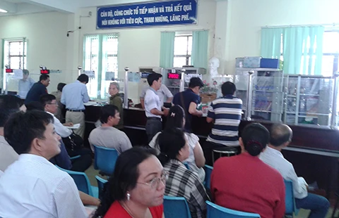 Người dân đang làm thủ tục nhà, đất tại văn phòng tiếp nhận UBND quận 12. Ảnh: C.TÚ