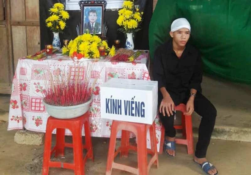 Em trai của Nguyễn Diệu Linh ngồi buồn bên bàn thờ di ảnh bố.