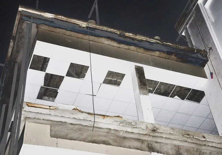 Vị trí đặt giàn giáo nơi ba công nhân đang làm việc bị té xuống