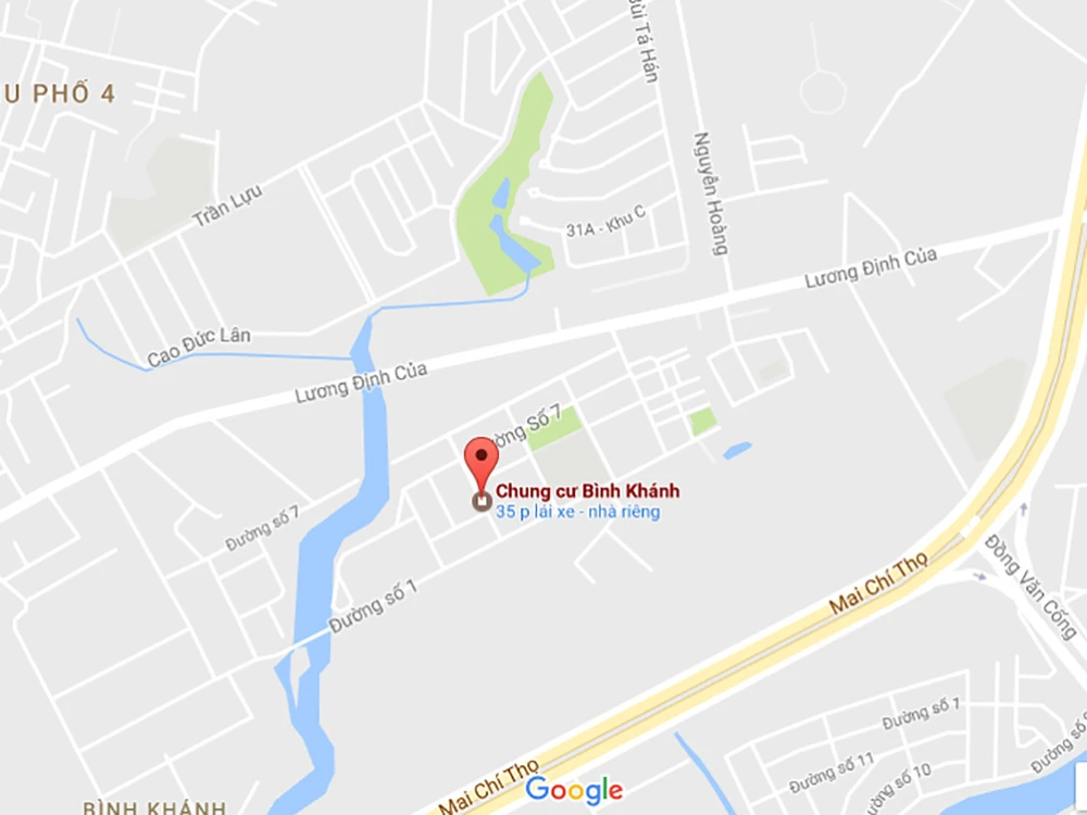 Vị trí chung cư Bình Khánh trên bản đồ. Ảnh: GOOGLE