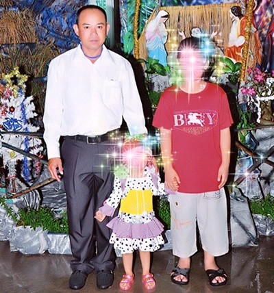 Chiến cùng hai con khi còn được tại ngoại. (Ảnh do gia đình cung cấp)