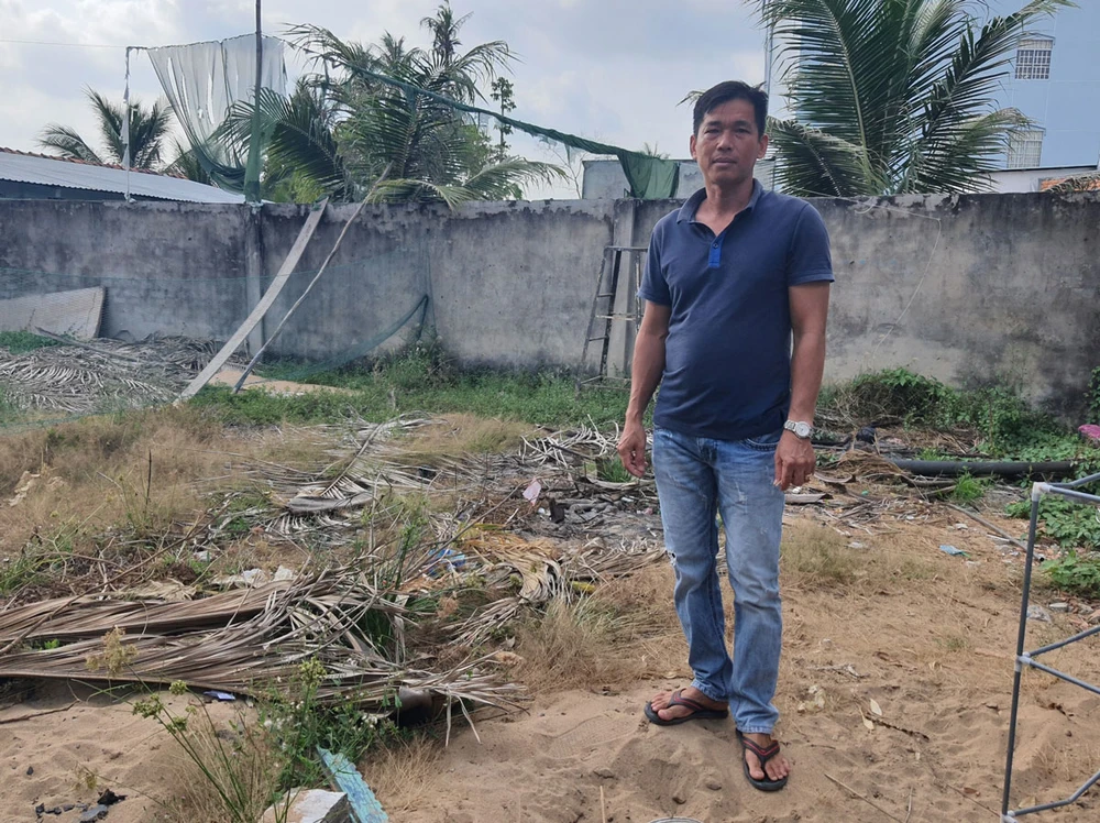 Ông Lê Phước Đạt trên phần đất bị kê biên để thi hành án. Ảnh: D.GIAO