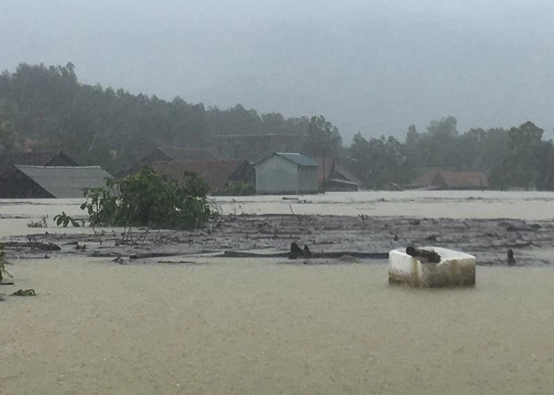 630 ngôi nhà tại xã Tân Hóa đang ngập sâu. Ảnh: T.ANH