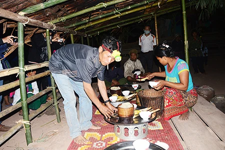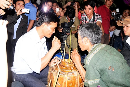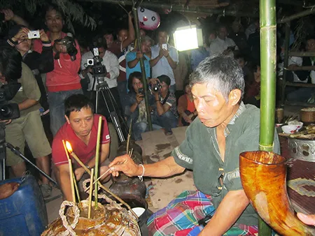Đến khoảng 19 giờ, Già làng Đinh Son thực hiện lễ cúng tế.