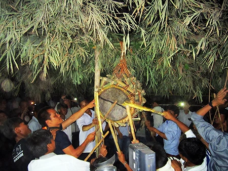 Người dân dùng đùi và cố gắng đánh vỡ mặt trống.
