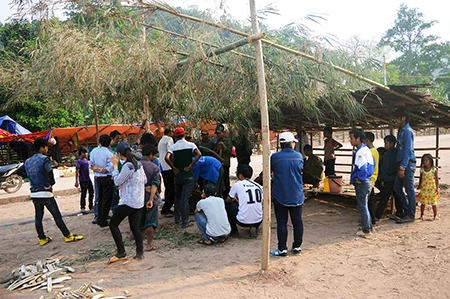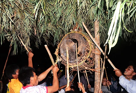 Công việc làm chiếc trống cho đêm hội chiếm rất nhiều thời gian công sức.