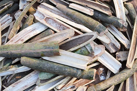Những thanh tre được sử dụng để "nong" dây mây cho mặt trống được chắc chắn.