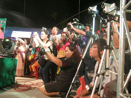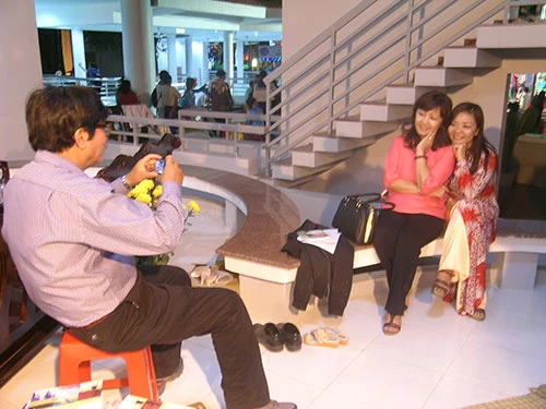 Nhà văn Hoàng Đình Quang tranh thủ chụp người đẹp