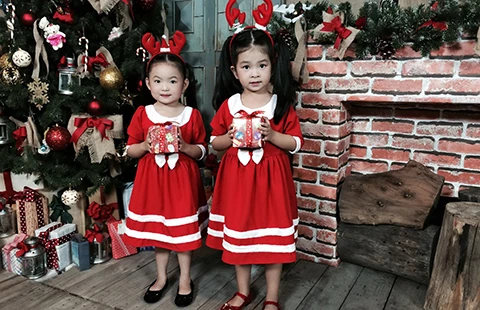 Nhạc sĩ Nguyễn Văn Chung sáng tác ca khúc Ba ơi về nhà như lời nhắn nhủ đến các bậc phụ huynh rằng Giáng sinh là mùa vui của gia đình. Trong ảnh: Bé Sóc và bé Thảo Nguyên là người thể hiện Ba ơi về nhà. Ảnh nhân vật cung cấp