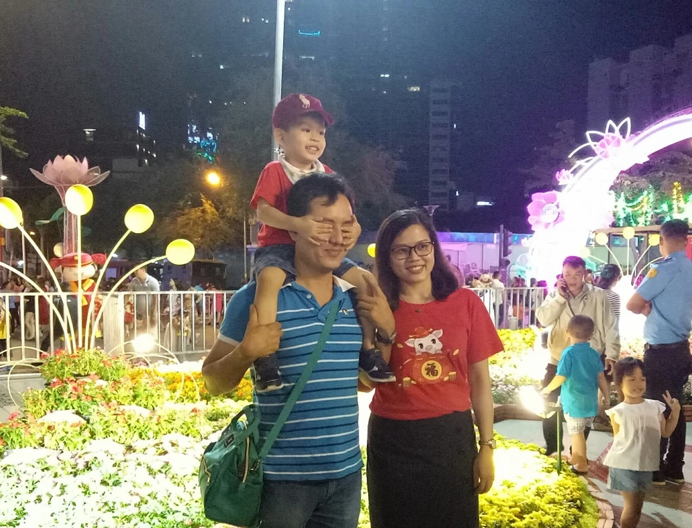 Cô Nga cùng chồng (sống tại Bình Tân, TP.HCM) cũng kịp lưu lại những tấm ảnh đẹp bên nhau tại đường hoa.