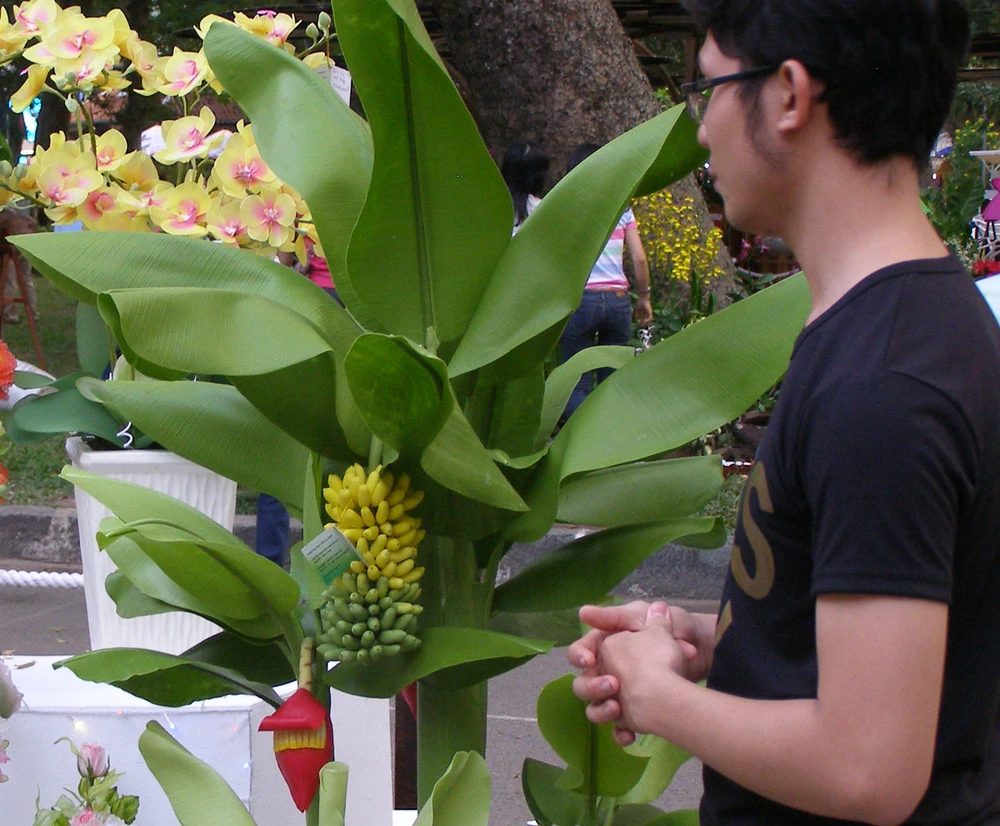 Du khách không khỏi bất ngờ khi phát hiện cây và buồng chuối được làm từ… đất sét.