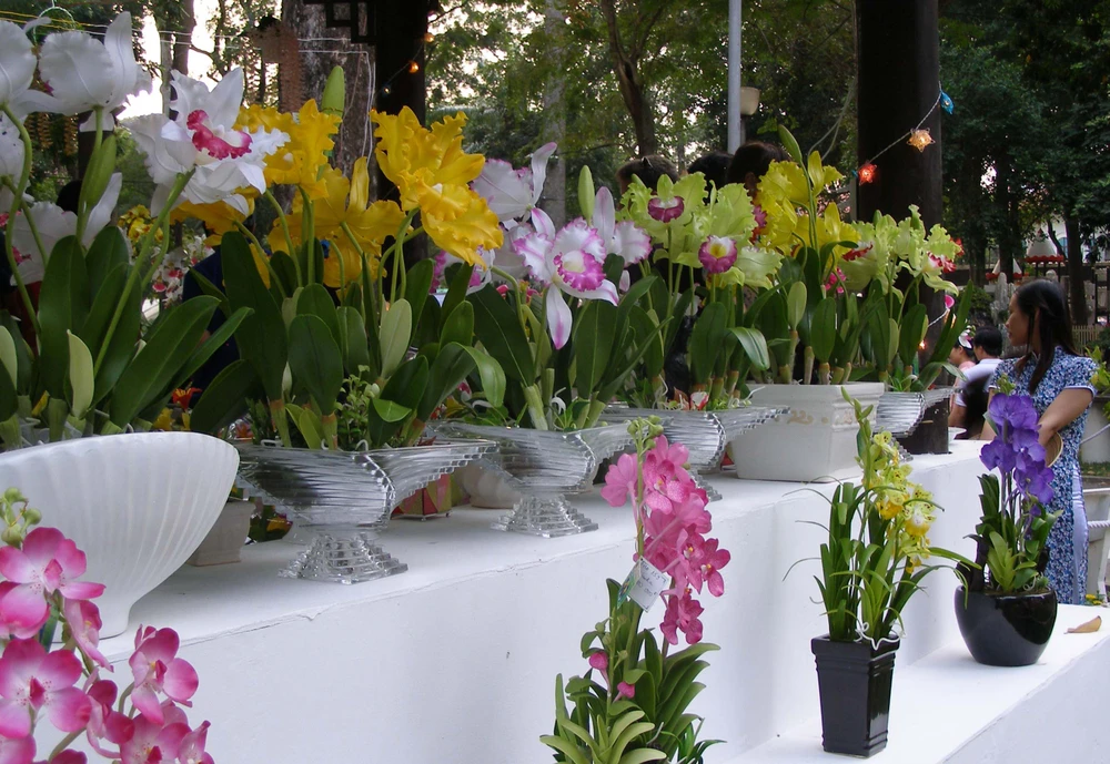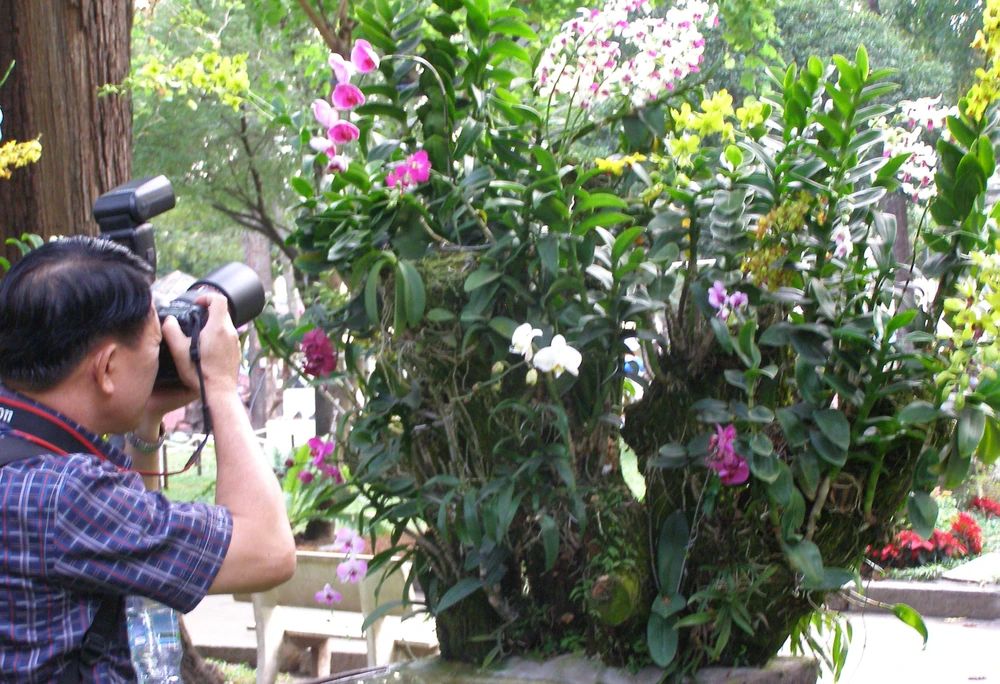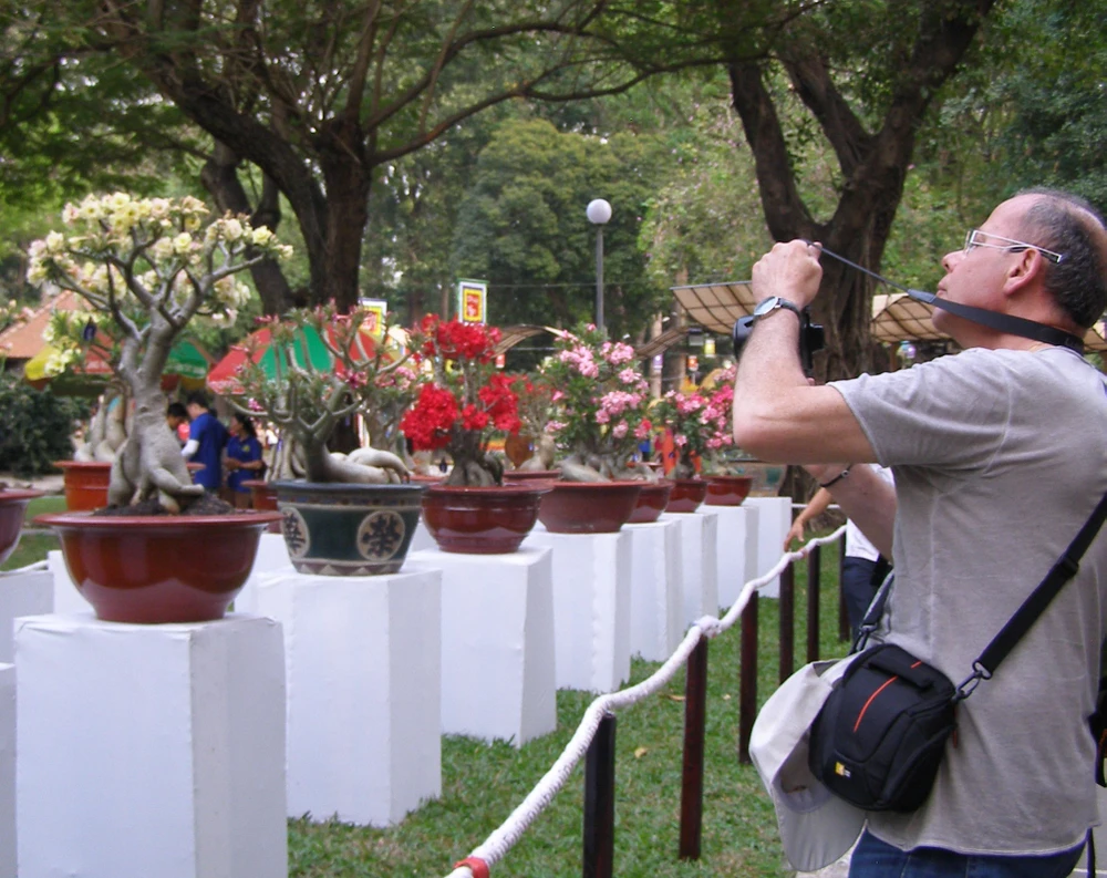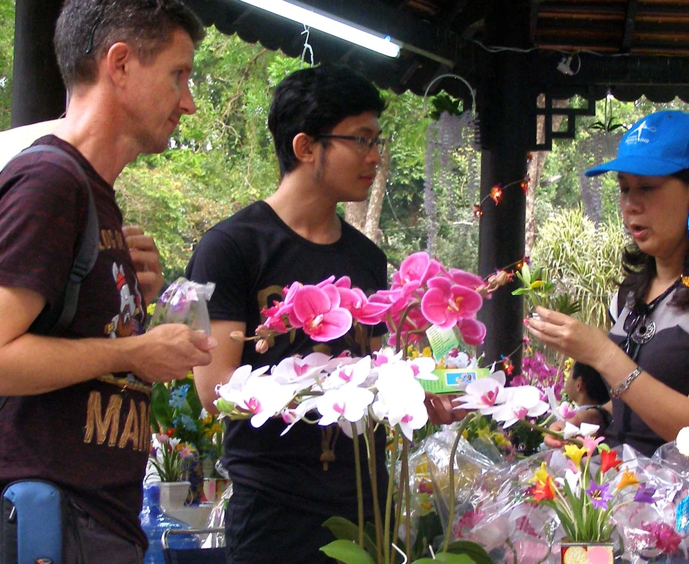 Du khách nước ngoài cũng thích thú các gian hàng Hội hoa xuân TP.HCM 2014.