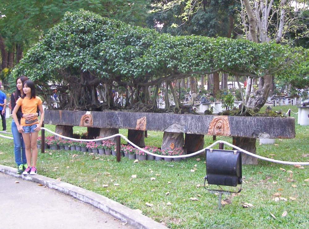 Du khách chụp hình với cây sanh dài hơn 5 m.