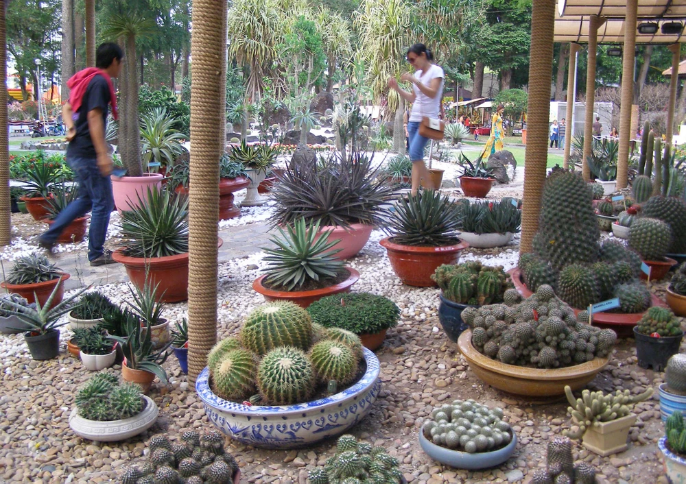 Tiểu cảnh được hình thành từ xương rồng, sỏi đá… luôn thu hút du khách.