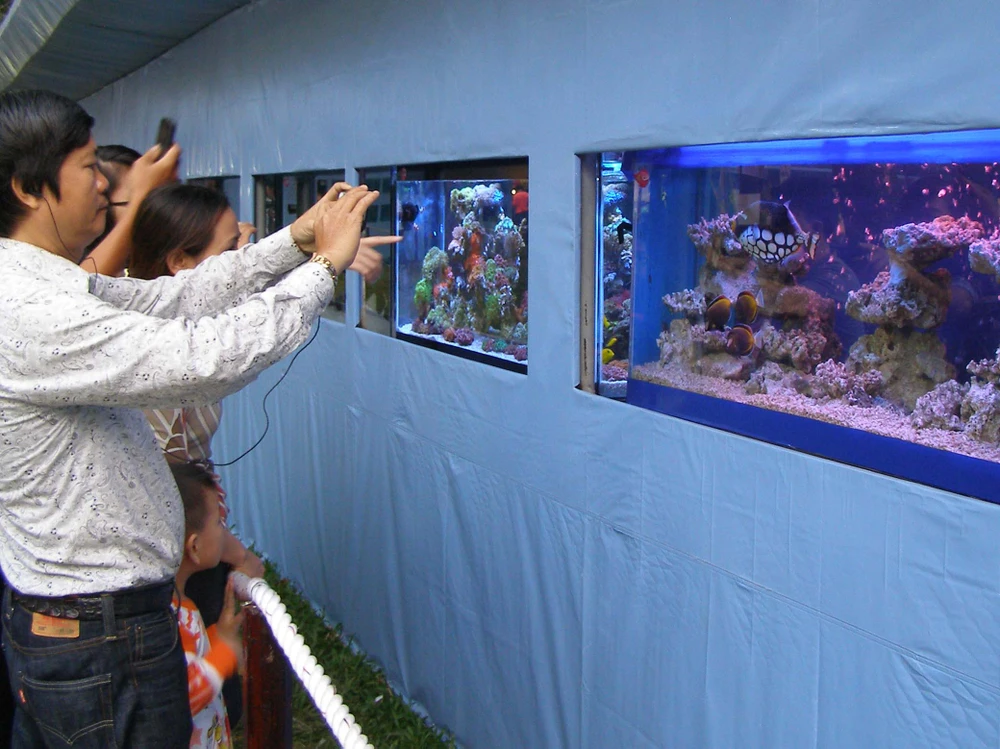 Du khách cũng thích thú ghi hình cá cảnh lạ, đẹp mắt.