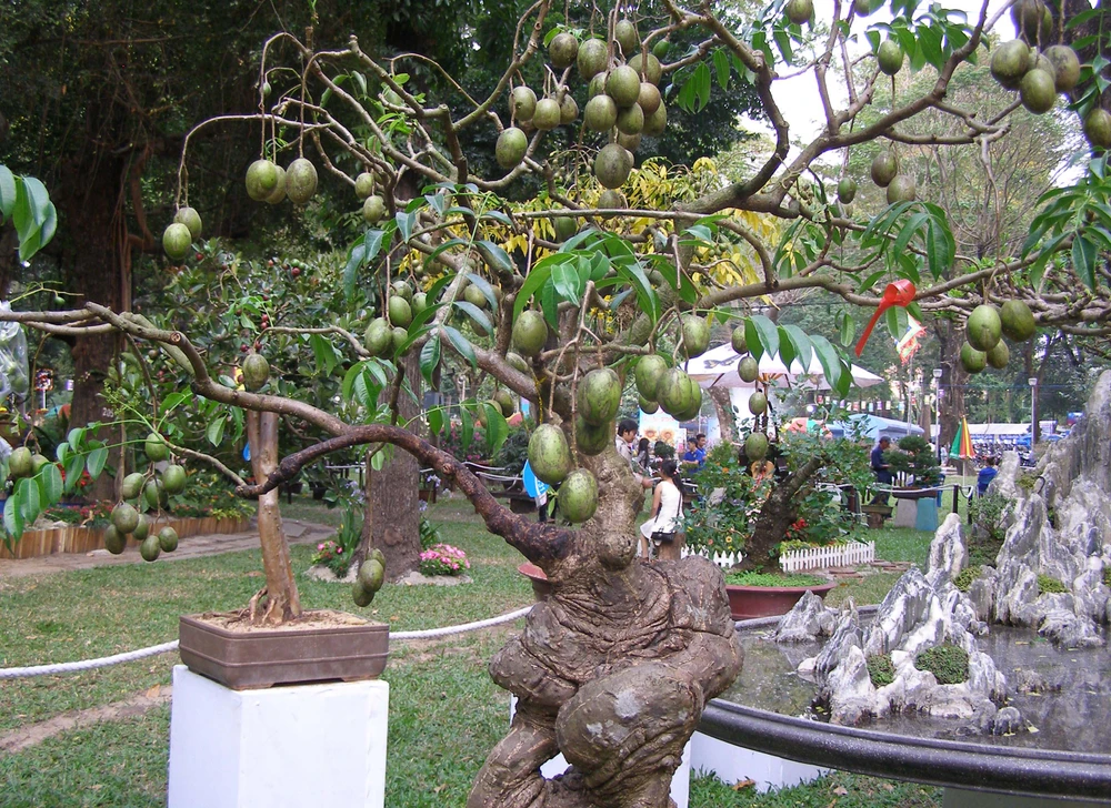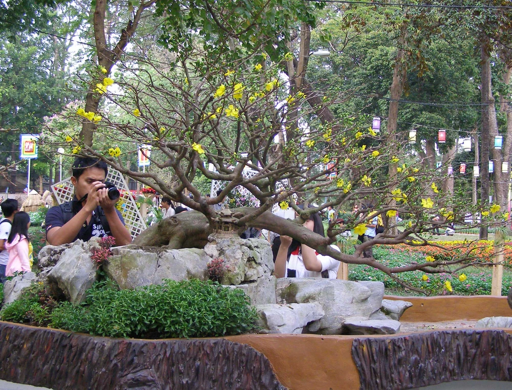 Nhờ được tạo dáng đẹp mắt, cây mai trong Họi hoa xuân 2014 thu hút nhiều người xem.