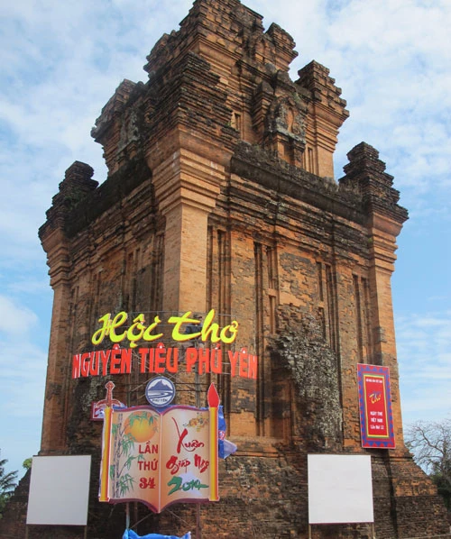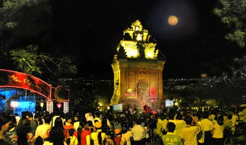 Tháp Chăm cổ trên núi Nhạn chuẩn bị chào đón đêm thơ Nguyên tiêu Phú Yên Giáp Ngọ. Ảnh: TẤN LỘC