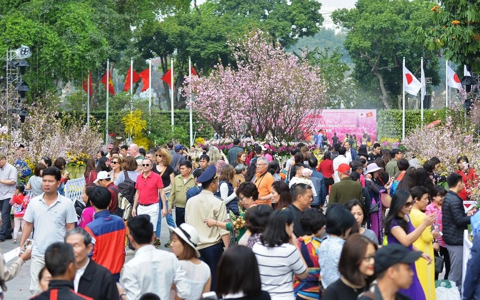 Lễ hội hoa anh đào Nhật Bản thu hút đông đảo du khách đến tham quan và chụp ảnh. Nguồn: Zing.vn