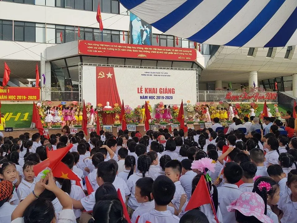 Cô Lê Thị Thúy Hằng, giáo viên Trường Tiểu học-THCS Mỹ Đình 1 (quận Nam Từ Liêm), cho biết trường tổ chức khai giảng sớm cho các em học sinh trong khoảng từ 7 giờ 30 đến 8 giờ 30 là kết thúc. Như vậy các em đỡ bị nắng, ảnh hưởng tới sức khỏe. Sau khai giảng các em sẽ học bình thường. Đặc biệt, lễ khai giảng năm nay của trường không có bóng bay, chỉ có cờ hoa và các tiết mục văn nghệ.