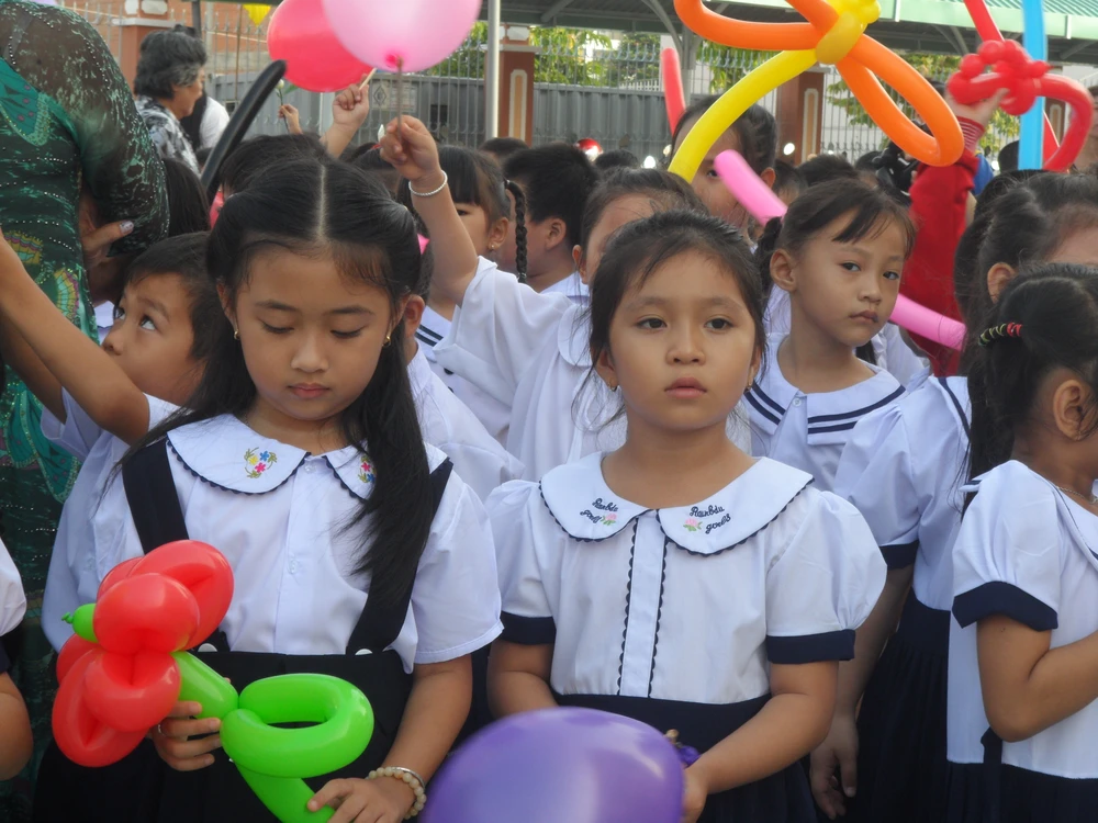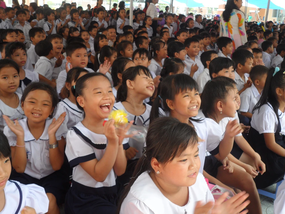 Ở ngôi trường tiểu học Nguyễn Bỉnh Khiêm (Quận 1), các thầy giáo, cô giáo đã mang đến cho các em học sinh một ngày hội khai giảng đầy tiếng cười và sự thích thú. Hôm nay Nhà trường đã tổ chức một ngày hội khai giảng chứ không phải lễ khai giảng như nhiều năm trước.