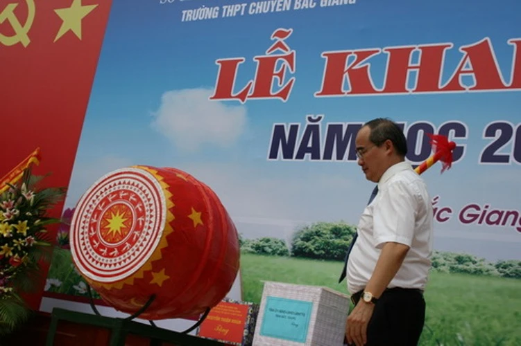 Đến dự lễ khai giảng tại Trường THPT chuyên Bắc Giang, Chủ tịch UBTWMT Tổ quốc Việt Nam Nguyễn Thiện Nhân bày tỏ vui mừng vì trường dạy rất tốt ngoại ngữ cho học sinh với nhiều thứ tiếng Anh, Pháp, Trung...