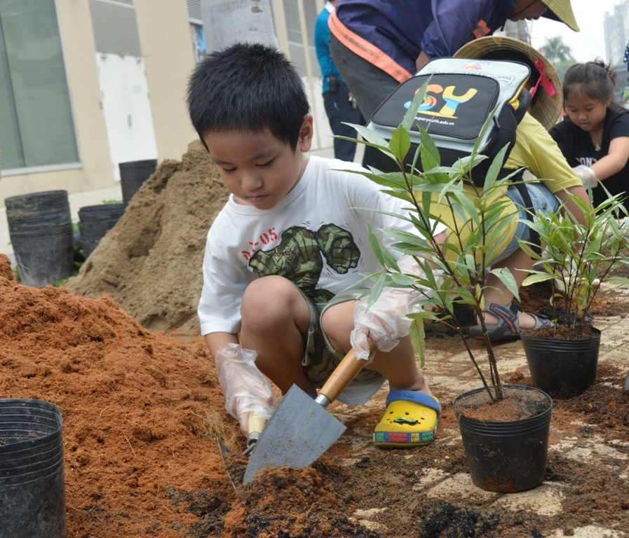Các bé thiếu nhi rất hào hứng khi được trải nghiệm cảm giác làm nông dân thực thụ.
