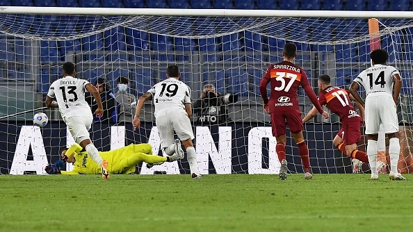 Tiền vệ Veretout đánh bại Szczesny trên chấm phạt đền để mở điểm cho AS Roma. Ảnh: Getty Images.