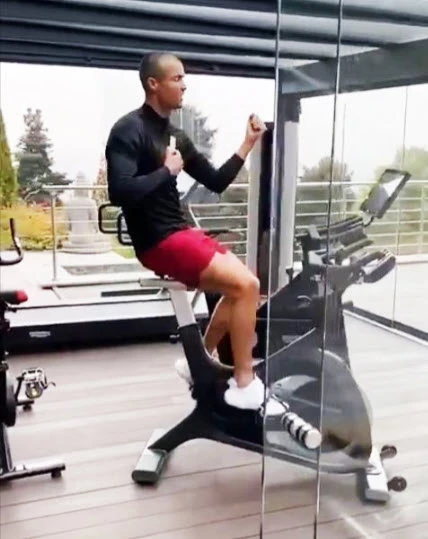 Mới đây, Ronaldo đã chia sẻ đoạn clip được bạn gái Georgina Rodriguez quay lại cảnh mình đang tập thể lực trên máy tại nhà ở Turin với cái đầu… nhẵn nhụi.