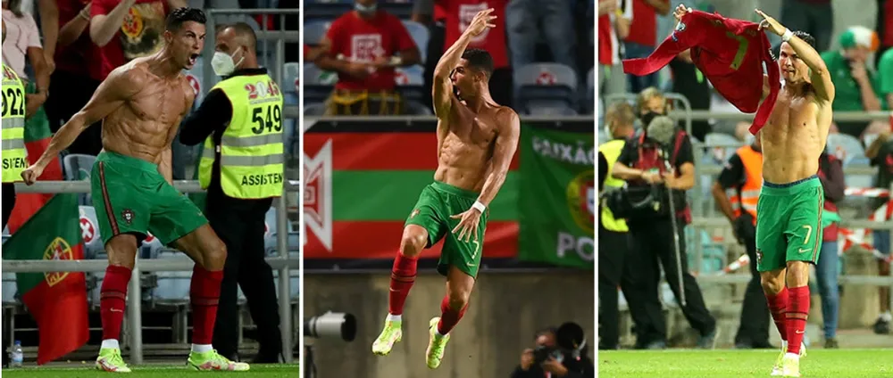 Ronaldo cởi áo ăn mừng bàn thắng... ẢNH: THE SUN