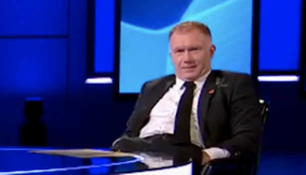 Paul Scholes ngồi bất động nhưng đến phút cuối ông vẫn nở một nụ cười sau bàn thắng của Ronaldo. ẢNH: BT SPORTS