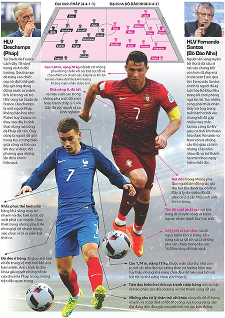 Ronaldo được xem là đầu tàu kéo cả đoàn tàu Bồ Đào Nha, còn Griezmann là người hùng mới của nước Pháp được các đồng đội phục vụ rất nhiều. Nếu với Ronaldo đây có thể là Euro cuối thì đối với Griezmann tất cả mới chỉ bắt đầu.