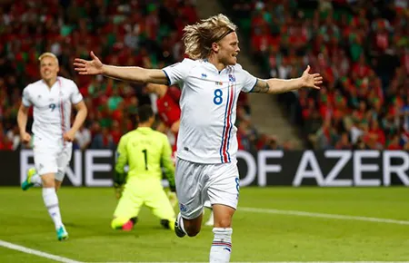 Bjarnason ăn mừng bàn thắng gỡ hòa 1-1 cho Iceland.