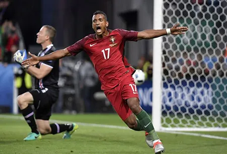 Niềm vui của Nani khi mở tỉ số cho Bồ Đào Nha.