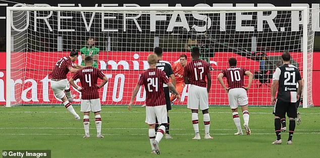 Phút 62, trung vệ Bonucci để bóng chạm tay trong vòng cấm, khiến Juventus phải chịu phạt đền. Trên chấm 11 mét, Ibrahimovic dễ dàng đánh lừa được Szczesny để giúp AC Milan rút ngắn tỉ số xuống còn 1-3. Đến phút 66, hàng công của AC Milan tổ chức tấn công bài bản để cho tiền vệ Franck Kessie tung cú dứt điểm giữa “rừng” hậu vệ của Juventus gỡ hoà 2-2 cho đội chủ nhà.
