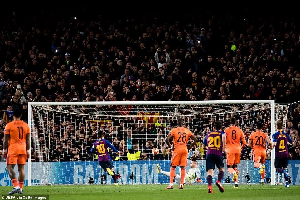 Messi sút penalty thành công mở bàn cho Barcelona.