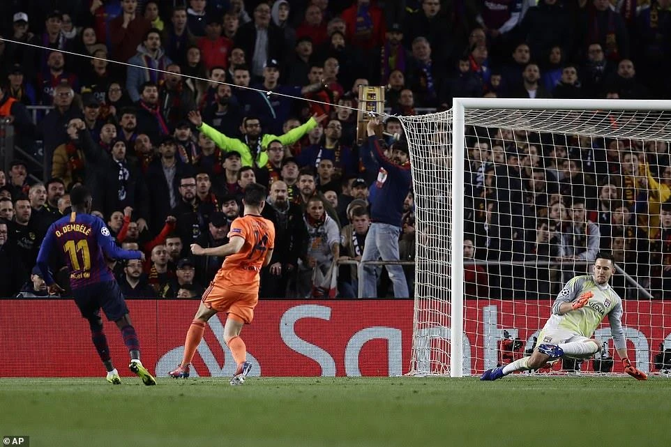 Dembele kết thúc bữa tiệc bàn thắng của Barcelona khi ghi bàn nâng tỉ số lên 5-1.