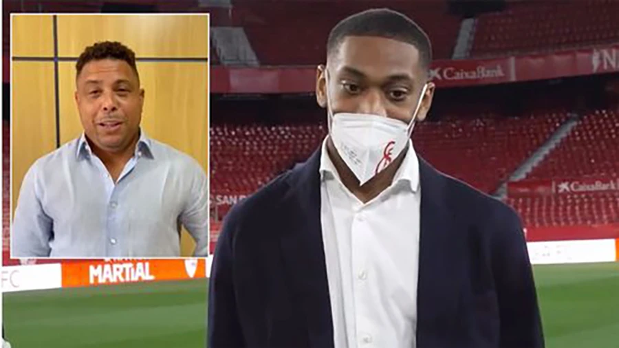 Martial ra mắt Sevillla vào sáng hôm qua (giờ Tây Ban Nha), nơi anh gặp gỡ báo chí để chia sẻ cảm xúc của mình. Và có một bất ngờ dành cho Martial khi thần tượng của anh là Ronaldo người Brazil đã gửi cho anh một thông điệp xúc động.