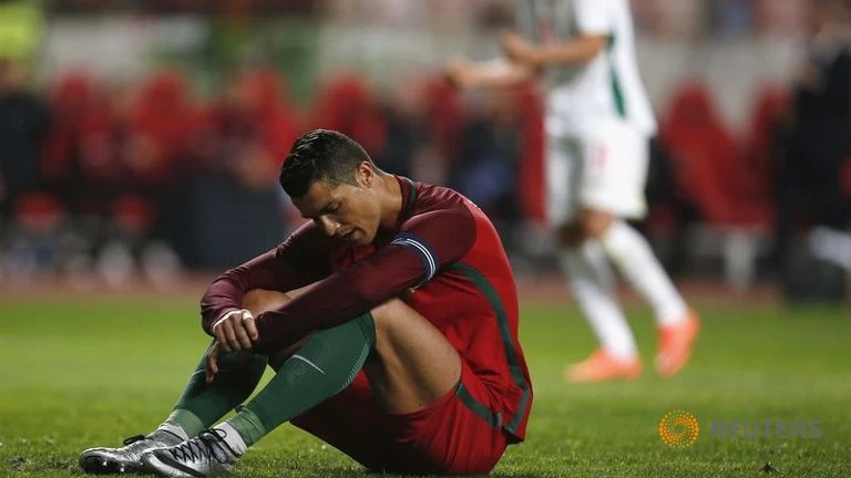 Ronaldo thể hiện sự thất vọng sau khi sút không thành công quả phạt đền
