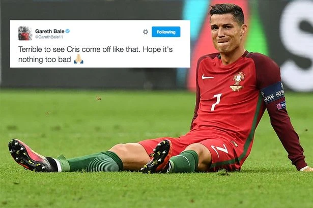 Nhìn thấy Ronaldo vật vã khóc trên sân vì chấn thương và cuối cùng phải rời trong nước mắt, đối thủ của CR7 tại trận bán kết vừa qua, Gareth Blale đã viết: “Thật khủng khiếp khi nhìn thấy Cris bị thương như thế. Hy vọng mọi thứ sẽ không quá xấu”, đồng đội của Ronaldo tại Real Madrid chia sẻ.