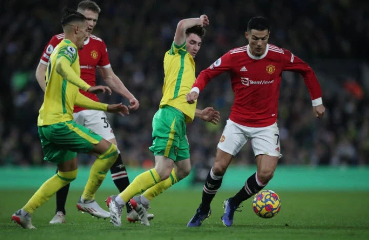 HLV Ralf Rangnick đã tung ra sân đội hình mạnh nhất có thể ở trận đấu này với Cristiano Ronaldo đá cao nhất trong đội hình MU. Không như trận trước, MU không chủ động đá pressing ngay từ đầu, điều đó giúp đội chủ nhà Norwich có khởi đầu cực tốt trước đội chủ sân Old Trafford.