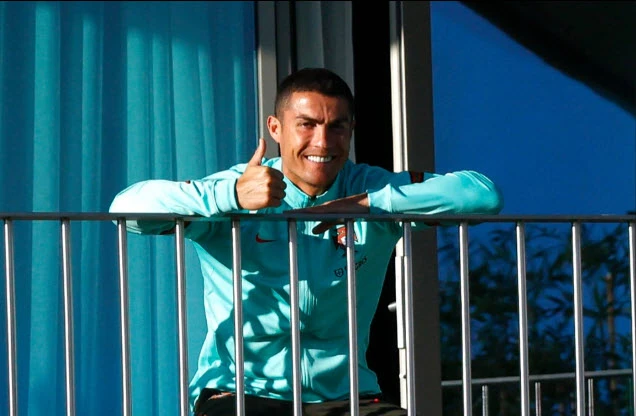 Sau thông tin Ronaldo mắc COVID-19, người ta ghi lại hình ảnh Ronaldo giơ ngón tay cái bên ngoài ban công phòng của mình tại nơi tuyển Bồ Đào Nha tập trung. Ronaldo hoàn toàn không có biểu hiện gì của bệnh COVID-19.