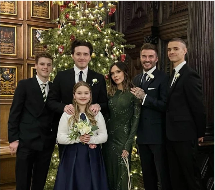 Gia đình Beckham cũng... sum họp vui vẻ tại nhà. "Gái rượu" Harper của Bec-Vic trông thật dễ thương. Ảnh: S.S