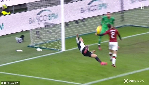 Pha bắt vô-lê của Ronaldo đưa bóng chạm tay hậu vệ của AC Milan giúp Juventus được hưởng phạt đền.