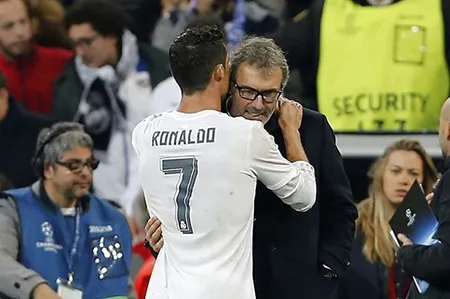 Sau trận đấu Real Madrid thắng PSG 1-0 trên sân nhà tại vòng bảng Champions League hồi giữa tuần, Ronaldo đã tiến tới bắt tay HLV Blanc của PSG và thì thầm to nhỏ điều gì đó với HLV này.