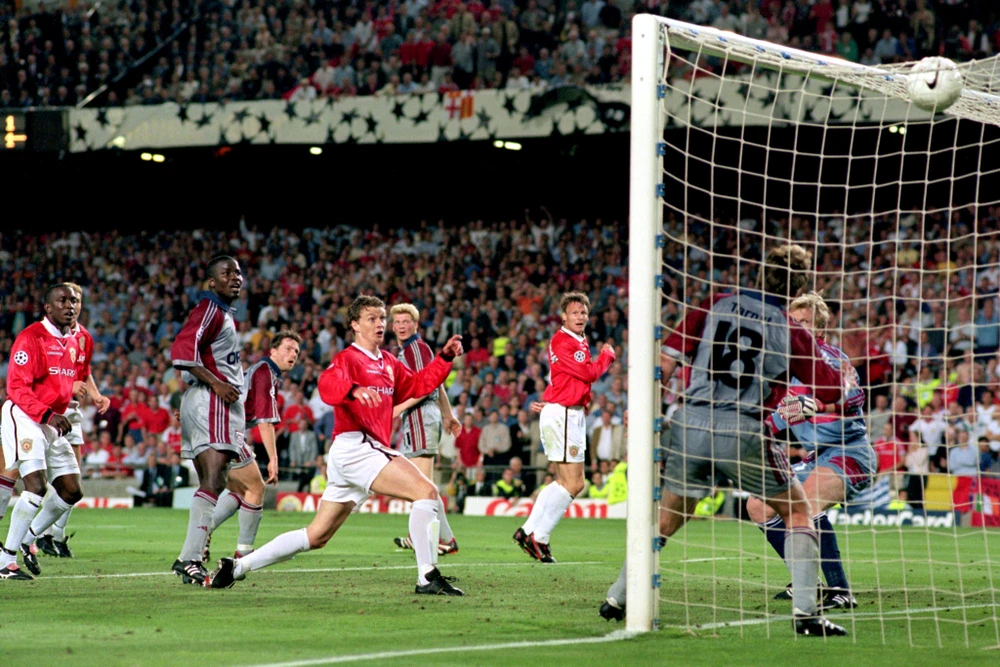 Solskjaer ghi bàn thắng ở phút 90+3 trong trận chung kết Champions League 1999 với Bayern Munich. Ảnh: CGI.