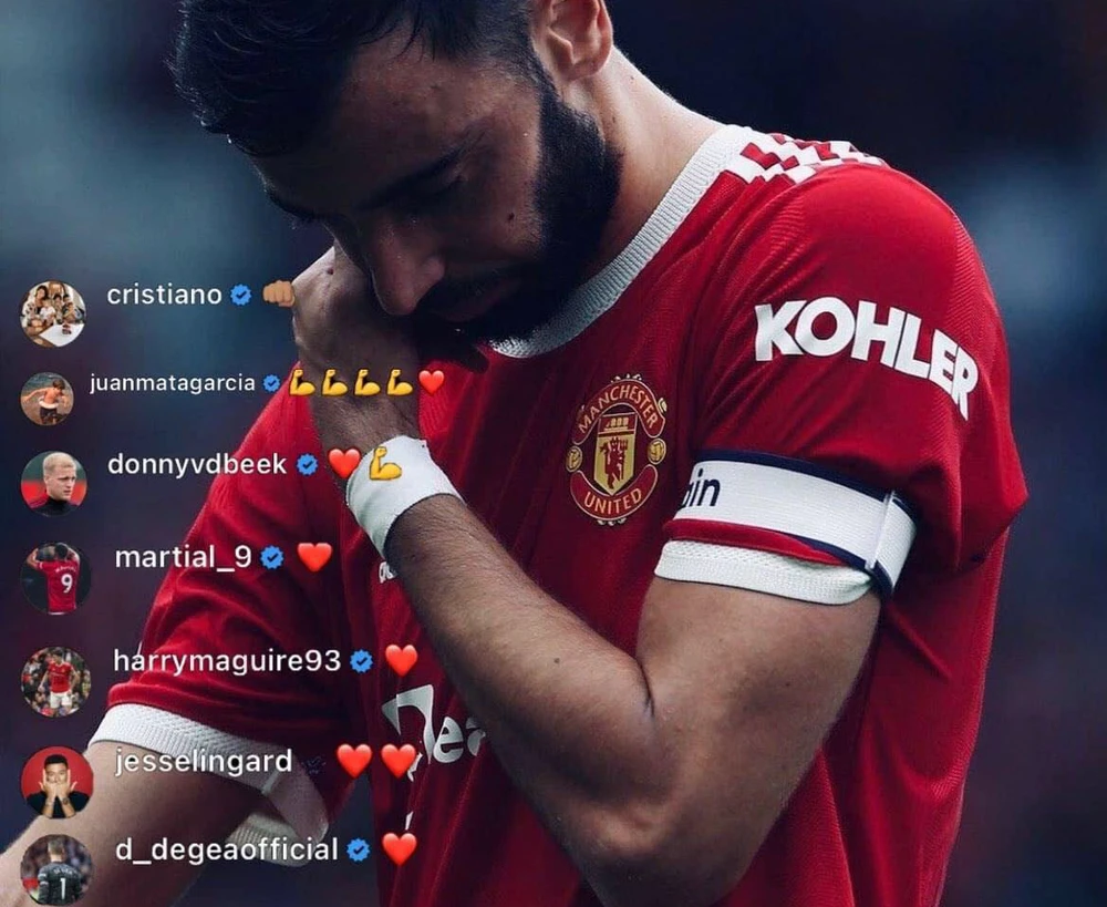 Phía dưới bài đăng của Bruno, đàn anh Cristiano Ronaldo đã tung một “cú đấm” thể hiện sự ủng hộ của mình đối với đàn em cùng với các cầu thủ khác như David De Gea, Anthony Martial và Diogo Dalot và hy vọng tiền vệ hào hoa người Bồ Đào Nha này có thể mạnh mẽ và tiếp tục.