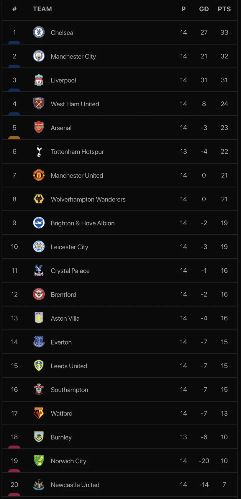 Giành chiến thắng kịch tính tại Old Trafford, MU có được vị trí thứ 7 trên BXH với 21 điểm sau 14 vòng đấu, Arsenal sau trận thua này vẫn đứng thứ 5 với 23 điểm. Ở cặp đấu giữa Tottenham và Watford, chủ nhà Tottenham giành chiến thắng với tỷ số 2-0 qua đó có được vị trí thứ 6 với 22 điểm, nhưng thi đấu ít hơn 1 trận.